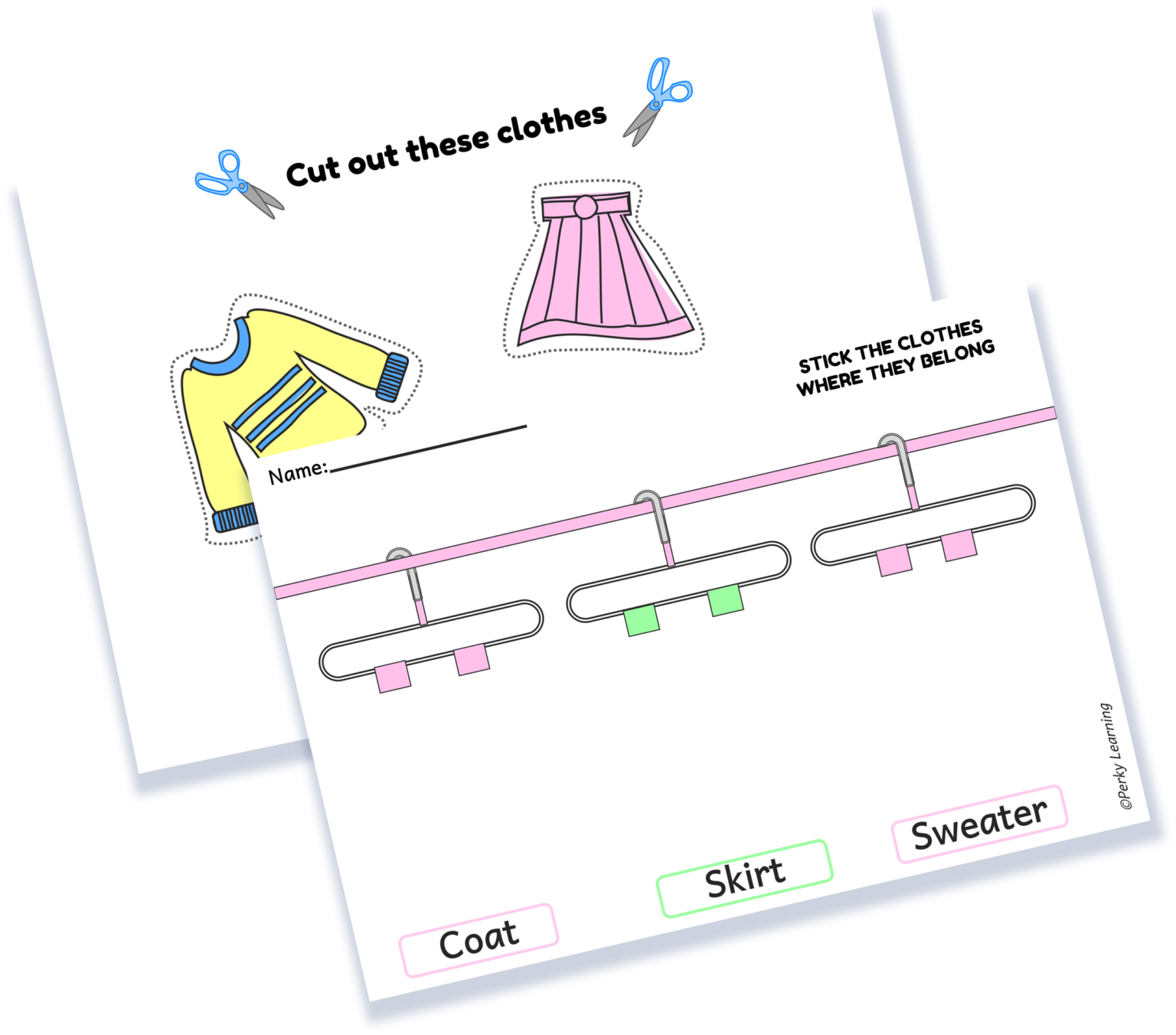 This free printable clothes cut and paste activity is designed for children ages 3–6 to support early English vocabulary and fine motor skills.